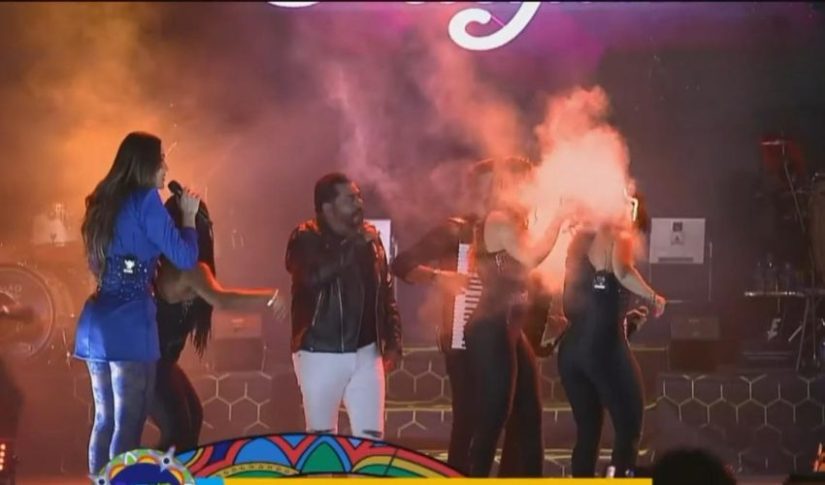 VÍDEO: Backing vocal da banda Limão com Mel tem cabelo atingido por fogo durante show em Pernambuco