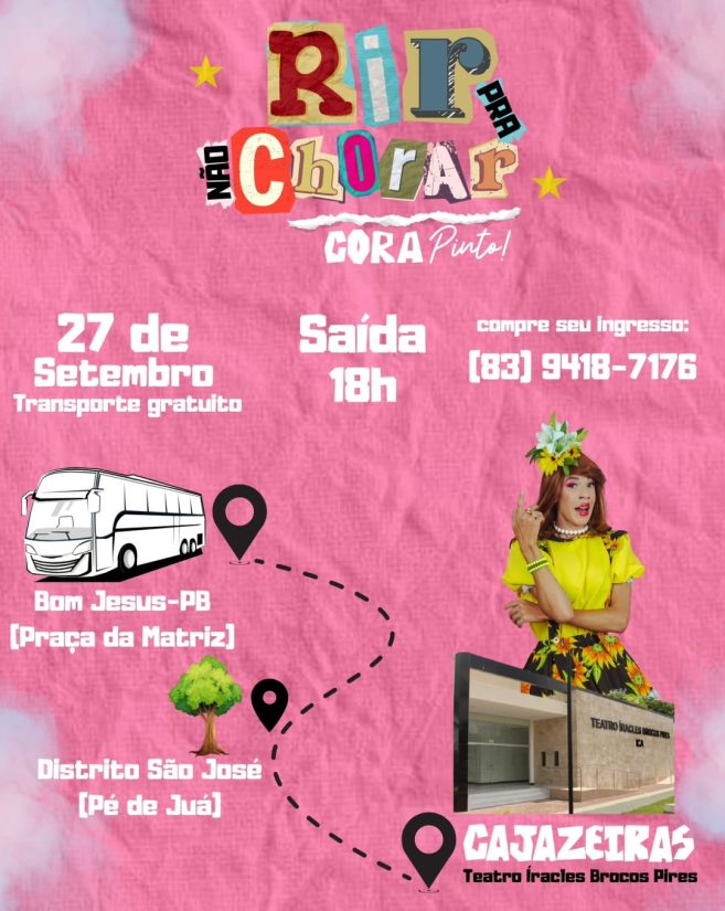 Para mais detalhes sobre ingressos e informações, o público pode acompanhar as novidades no perfil oficial da personagem: @corapintooficial no Instagram, ou entrar em contato pelo telefone: (83) 9 9418-7176.