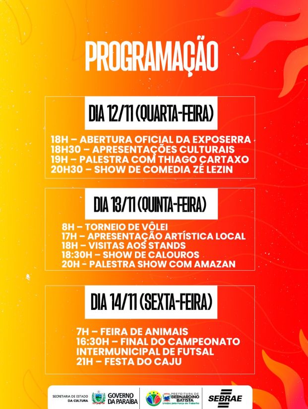 Neste ano a Prefeitura de Bernardino Batista, no Alto Sertão paraibano, inovou unindo a tradição da Festa do Caju com a primeira edição da Expo Serra, uma feira de empreendedorismo criada para fomentar a economia local e incentivar novos negócios.