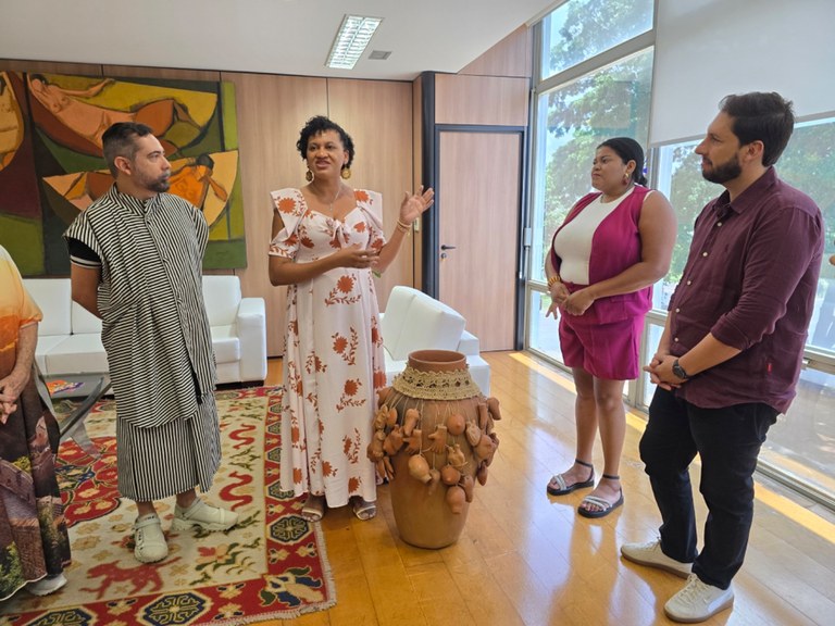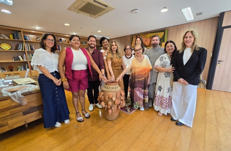 “O Governo do Estado vem se empenhando nas qualificações dos nossos artesãos através de oficinas e hoje comemoramos um dia muito importante, com a doação da peça das louceiras de Cajazeiras, batizada de ‘Ex-voto’, que carrega um tema profundamente enraizado na fé e na cultura sertaneja, representando a cura, a gratidão e a resiliência do povo nordestino. Esse ato de hoje é mais uma forma de agradecimento ao empenho do Ministério de valorizar e apoiar a cultura brasileira, ajudando todos os artesãos brasileiros’, comentou a primeira-dama.