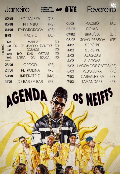 Neiff se apresenta no Carnaval de Cajazeiras na sexta-feira, dia 13 de fevereiro. Na mesma noite, tocam Fernandinha, Eric Land e Tikinho Pankadão.