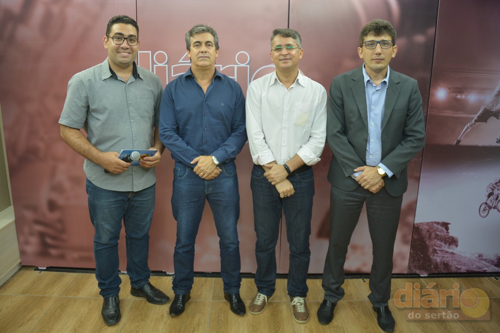 Superintendente comercial do Banco do Brasil na Paraíba, Célio Chagas (segundo à esquerda) e o gerente geral da agência de Cajazeiras, Alan Franklin (primeiro à direita), estiveram visitando os estúdios da TV Diário do Sertão