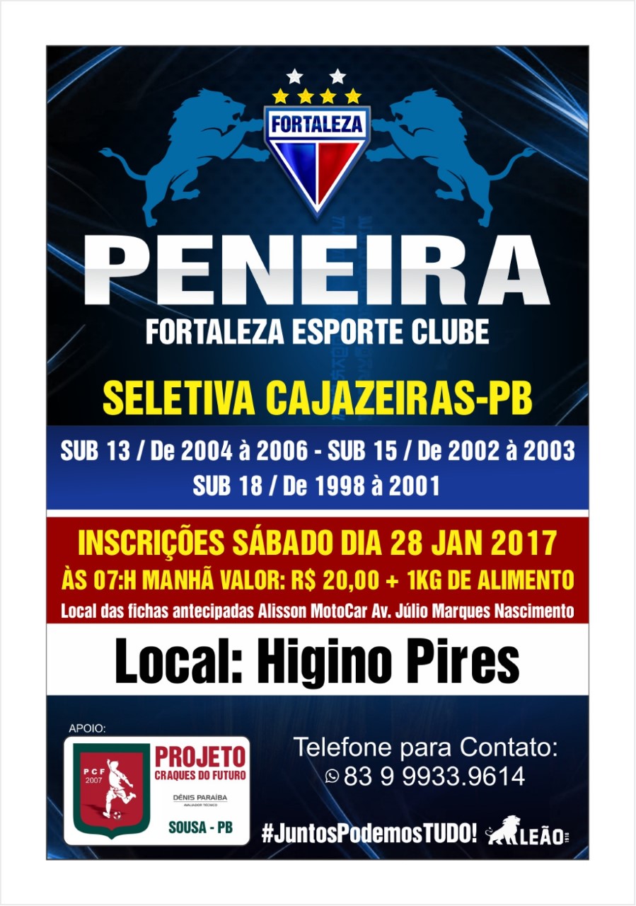 O Fortaleza Esporte Clube estará realizando a peneira seletiva no dia 28 de janeiro, na cidade de Cajazeiras. O local da seletiva será no estádio do município, Higino Pires.