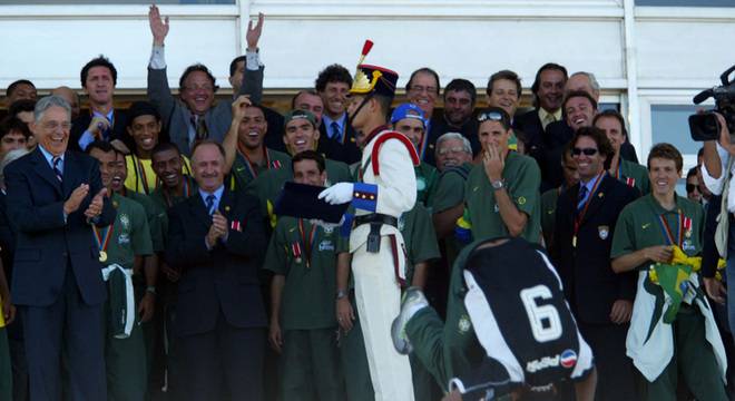Em 2002, Felipão levou seu time pentacampeão do mundo para a bênção de Fernando Henrique Cardoso.