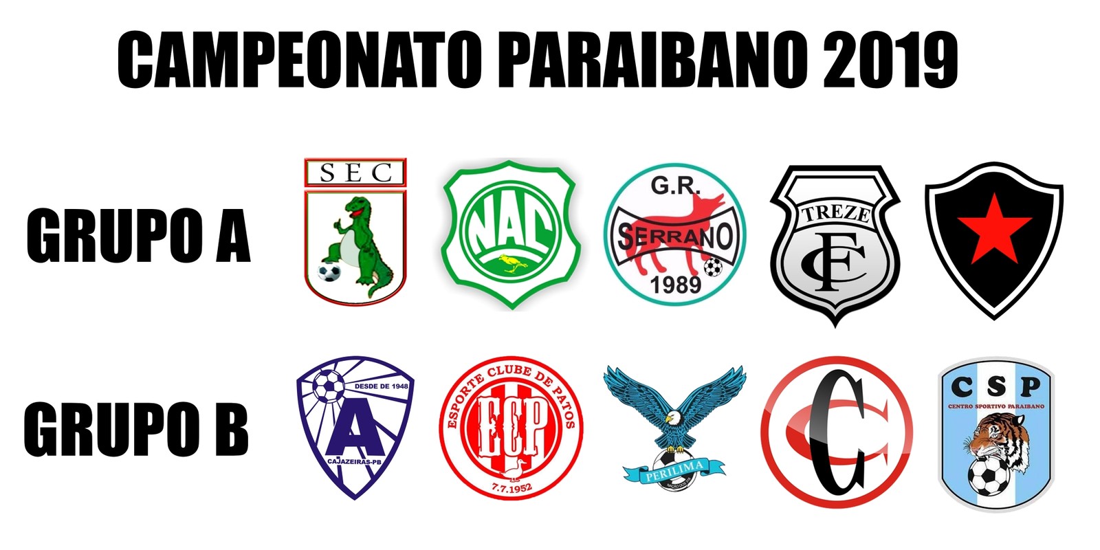 Com as presenças do craque Hulk e de representantes da CBF no palco, a FPF sorteou os grupos do Campeonato Paraibano 2019. Chamado de “grupo da morte”, o Grupo A ficou com Sousa, Nacional de Patos, Serrano, Treze e Botafogo. Já o Grupo B tem Atlético de Cajazeiras, Esporte de Patos, Perilima, Campinense e CSP.