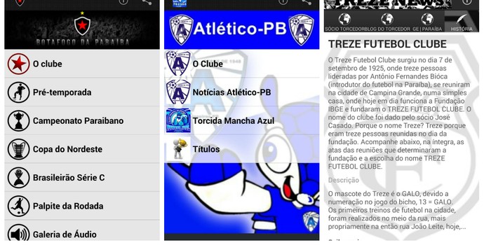 Uma novidade tecnológica vem chamando cada vez mais atenção entre os torcedores paraibanos. Isto porque os fãs de três times paraibanos já podem ter as informações de seus times do coração ao alcance de seus bolsos. Botafogo, Treze, e Atlético de Cajazeiras possuem aplicativos para serem baixados em aparelhos celulares. Na verdade, o Campinense também tem um aplicativo para chamar de seu, mas ultimamente este não vem funcionando. O mais curioso é que não se trata de aplicativos oficiais, criados pelos clubes que representam, e sim por torcedores, que os fizeram de forma totalmente independente.