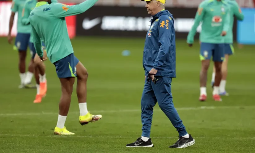 O técnico italiano Carlo Ancelotti optou pela entrada dos atacantes Matheus Cunha e Raphinha na equipe titular da seleção brasileira em treino realizado neste domingo (08) no Centro de Treinamento Joaquim Grava, do Corinthians.