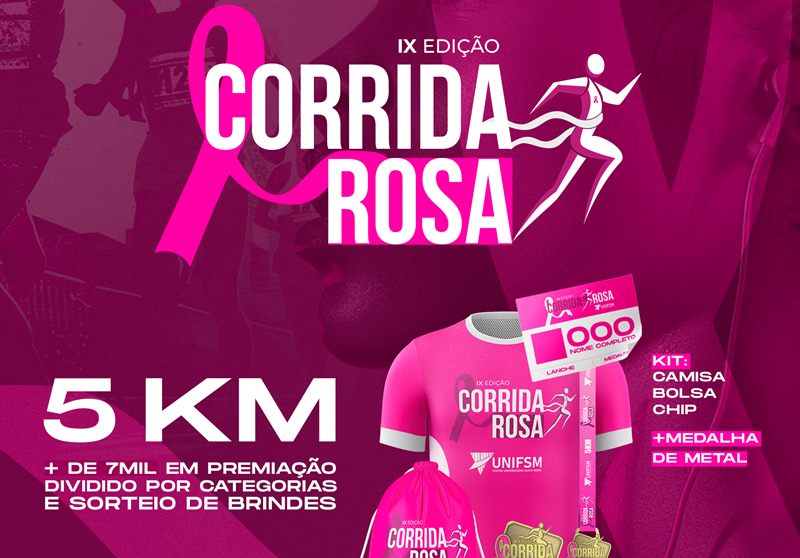 O Centro Universitário Santa Maria (UNIFSM) já está com inscrições abertas para a aguardada IX Corrida Rosa, um dos eventos mais emocionantes do calendário esportivo e social de Cajazeiras, no sertão paraibano. A corrida será realizada no dia 29 de outubro de 2025, e marca mais um importante momento de conscientização e mobilização em prol da luta contra o câncer de mama.