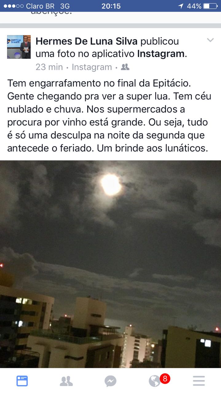 Internautas de todas as regiões também comemoraram esse fenômeno e lotaram as redes sociais com fotos da Superlua.
