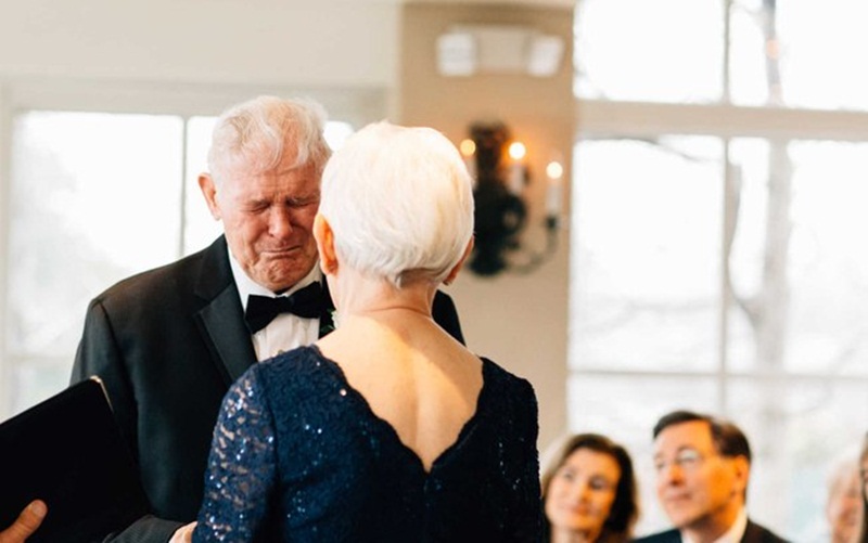 O momento que mais emocionou a todos foi quando J.C. viu Nancy entrar pelo corredor com um belo vestido azul. O idoso apaixonado não conteve as lágrimas, deixando todos os convidados comovidos. A emoção dele se tornou ainda mais evidente à medida que trocaram os votos, e a fotógrafa registrou tudo.