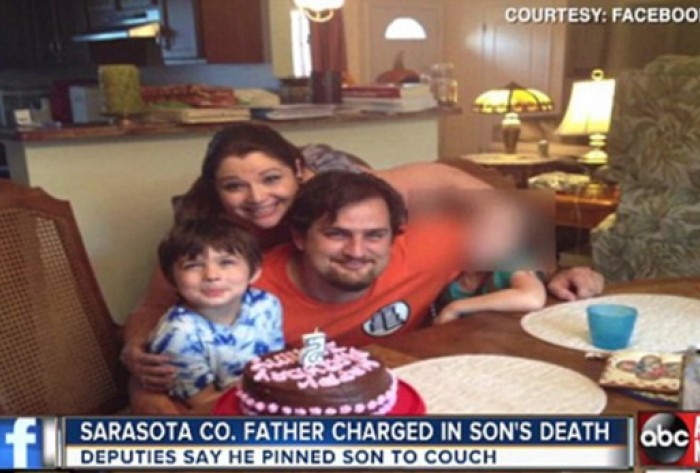 O irmão do menino morto, que testemunhou a agressão, disse aos detetives: “quando o pai o esmagou, ele morreu”.