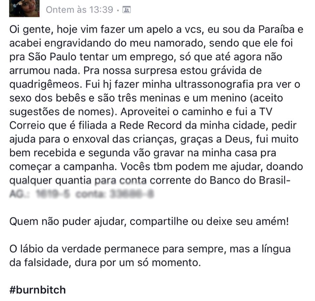 Começaram a circular na rede imagens que seriam de uma nova ‘grávida de de Taubaté’, usando a mesma roupa e repetindo o pedido de ajuda de Maria Verônica para criar os filhos. Usuários das redes sociais ficaram intrigados e se perguntaram se aquilo seria real.