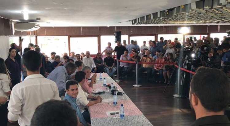 Ao lado do governador, o deputado federal Veneziano Vital (sem partido) marcou presença durante a coletiva. Ele é o candidato a Senador de Ricardo Coutinho.