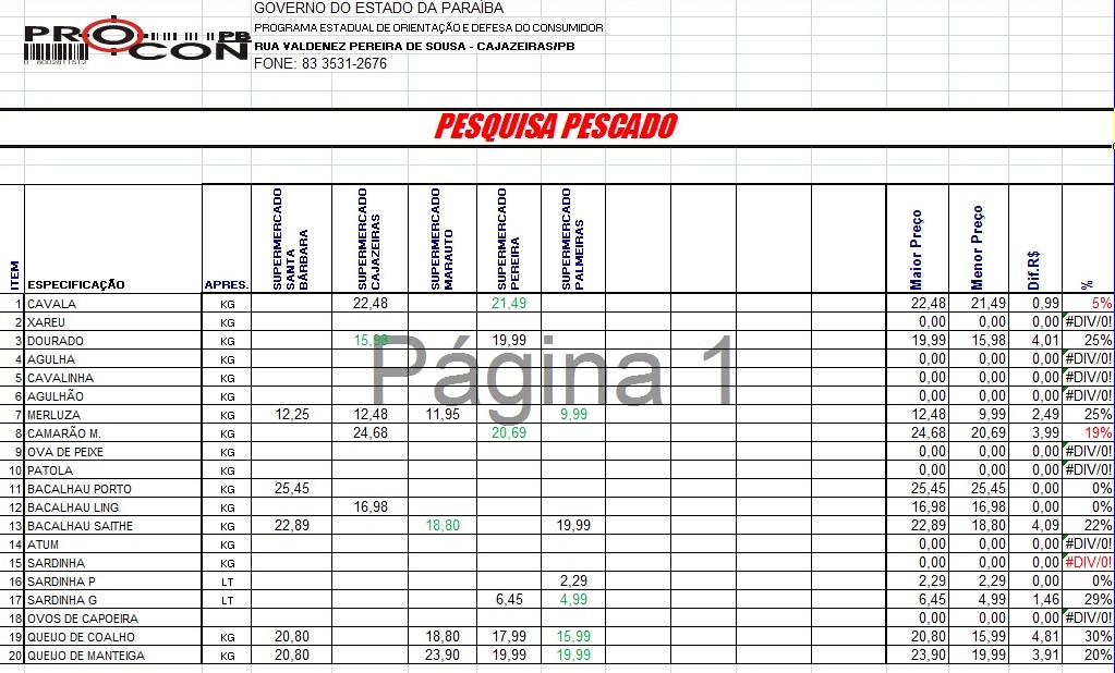 Procon constata variação de 30% em produtos da “Semana Santa” vendidos em Cajazeiras