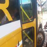 Um caminhão carregado de água mineral que seguia logo atrás acabou colidindo lateralmente com o ônibus. Com a colisão o ônibus escolar teve sua porta amassada e os alunos que estavam no interior do veículo tiveram dificuldades de abrir a porta de saída.