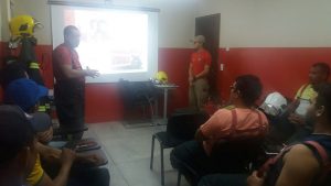 Dando continuidade ao ciclo de palestras, mais uma turma de comerciários recebeu instruções teóricas e práticas sobre prevenção e combate à incêndio, como também a utilização correta de extintores em principio de incêndio.