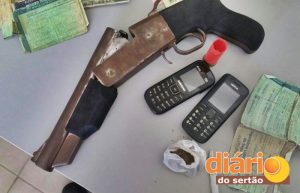 Com o suspeito de 21 anos, a polícia militar conseguiu apreender uma espingarda Cal 12. O acusado e a arma apreendida foram levados para delegacia de polícia civil de Cajazeiras. De acordo com os agentes de investigação, o suspeito havia saído recentemente do Presídio de Cajazeiras.
