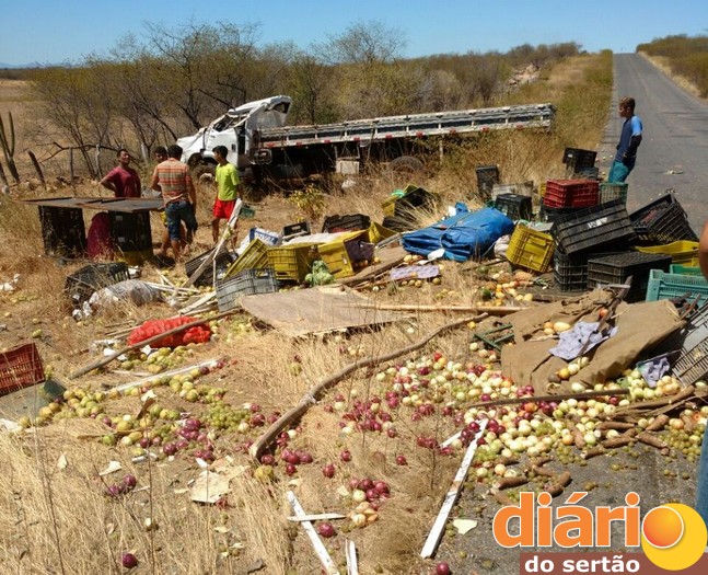O carro estava carregado de cebola e a carga ficou espalhada na rodovia