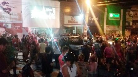 A PM logo foi acionada e teve início uma perseguição. Houve troca de tiros e algumas vidraças de lojas localizadas no centro da cidade ficaram estilhaçadas.