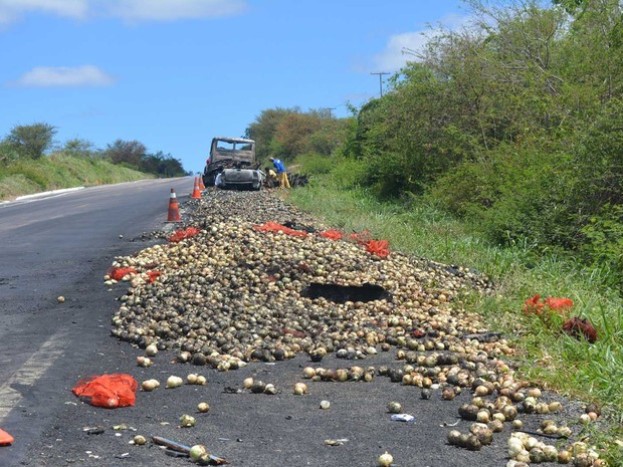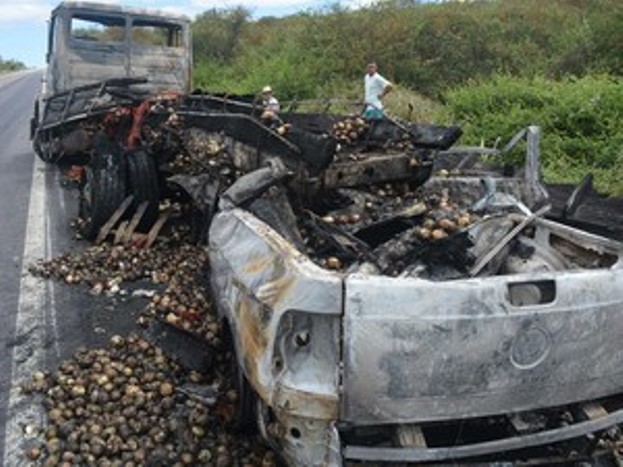 O caminhão transportava cebola e também foi atingido pelas chamas, queimando totalmente. O motorista do caminhão conseguiu abandonar o veículo.