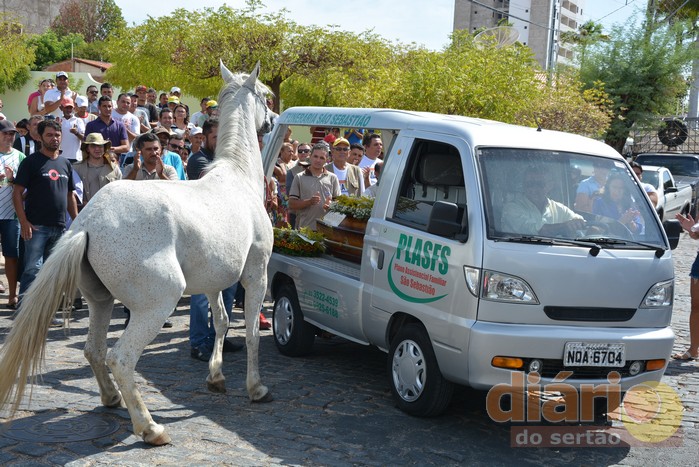 Amante da vaquejada, o funeral foi marcado por homenagens de amigos vaqueiros e o seu cavalo Sereno foi levada para despedida do dono.