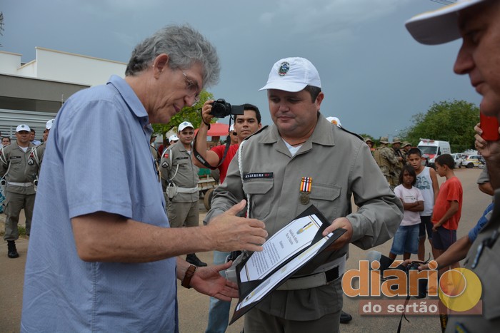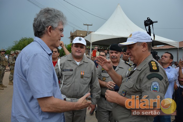 Durante seu discurso em Sousa, o governador anunciou aumento de 10% nos salários das polícias Militar e Civil. “Amanhã (sexta-feira, 30/03), vocês recebem 10% a mais em seus salários”.