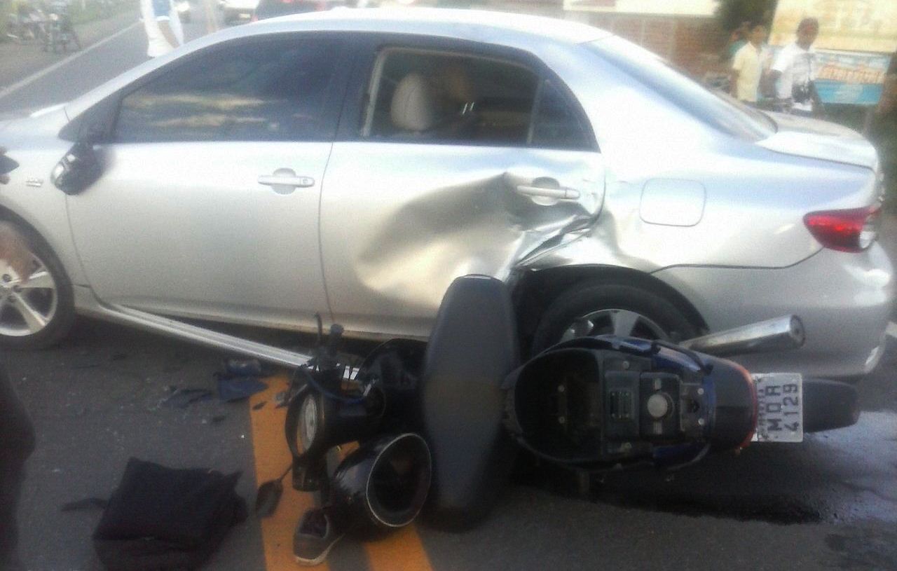Um Corolla prata, de placa OFF 1804, foi atingido na lateral por uma moto modelo Honda Biz, placa MOR 4129, próximo à entrada para o Parque Jardim da Paz.