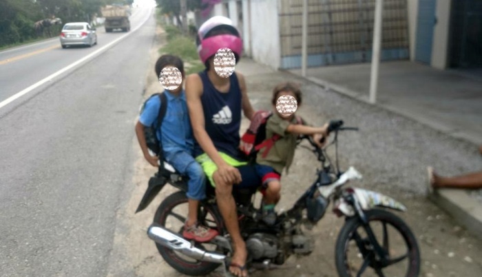 PERIGO: PRF flagra um adolescente levando duas crianças em ciclomotor na BR 230