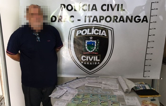 Autuado em flagrante, o suspeito foi levado à delegacia de Itaporanga, onde responderá pela prática de crimes contra o patrimônio e contra a fé pública.