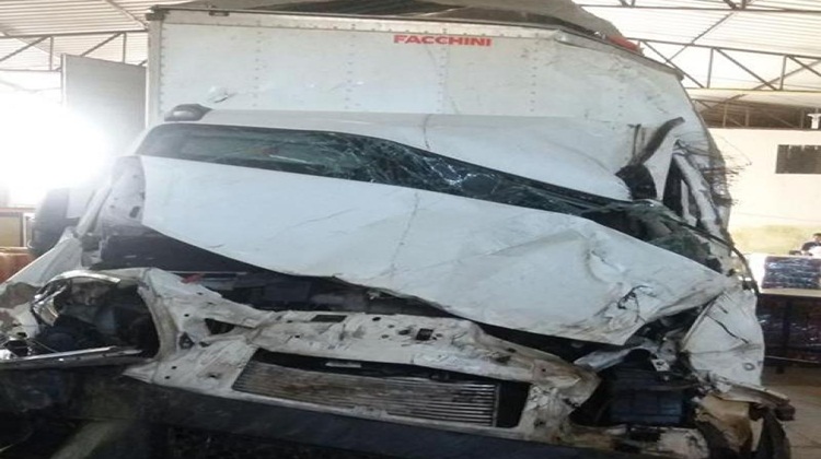 O caminhão em que ele e seu motorista viajam ficou muito destruído.