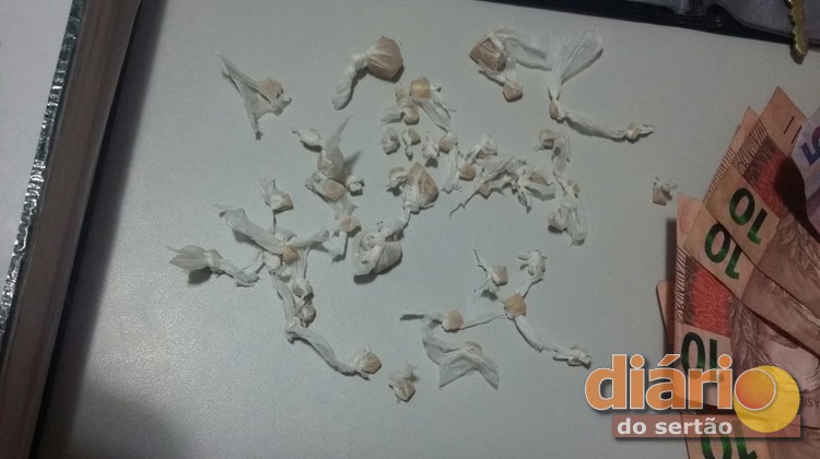 Ao realizar uma abordagem na dupla, foram encontradas 47 pedras de uma substancia semelhante à crack escondido entre outros objetos infantis na bolsa da companheira do acusado, um jovem de 20 anos de idade.