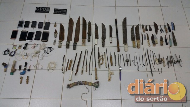 A operação contou com o apoio do Corpo de Bombeiros e policiais do BOPE e foram apreendidos facas, espetos, celulares, fones de ouvido e corda.