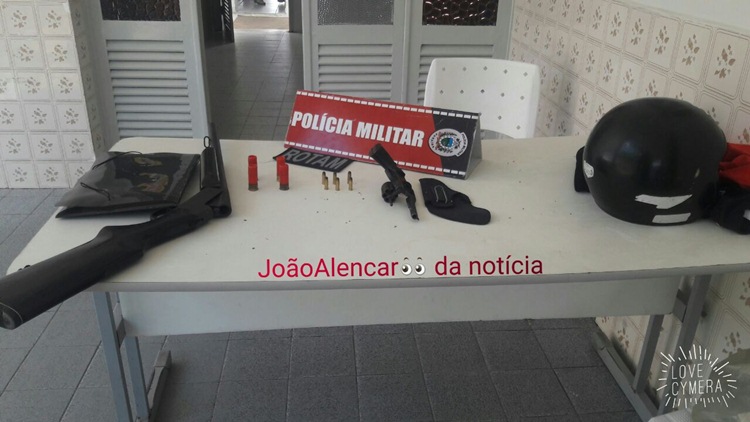 Com os suspeitos a polícia encontrou um revólver calibre 38 com seis munições intactas, uma espingarda calibre 12 com quatro cartuchos também intactos e uma pequena quantidade de substância semelhante a maconha.