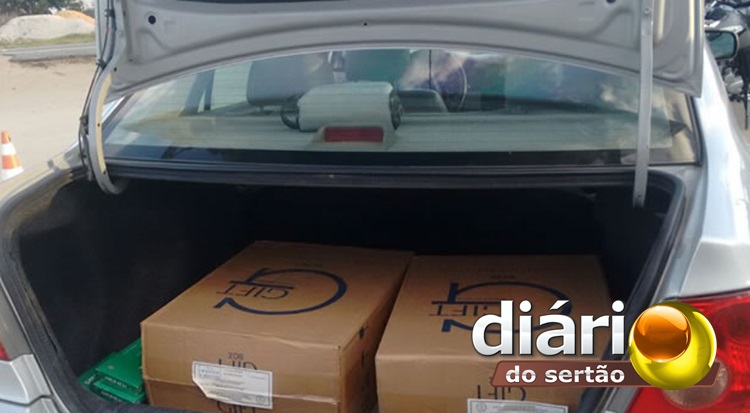 Durante blitz, carro com cigarros contrabandeados é apreendido no Sertão; acusado foi levado para a PF
