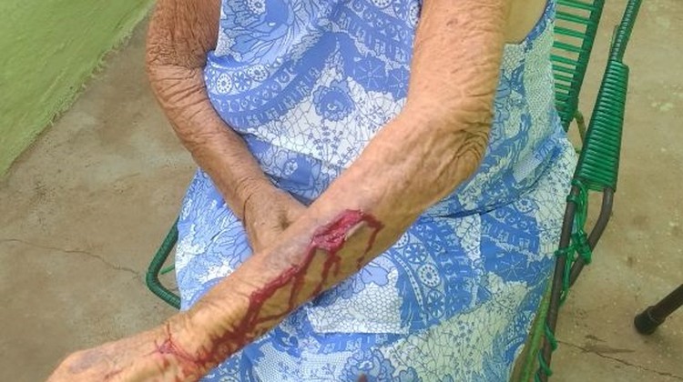 A polícia acionou o Conselho do Idoso da cidade, que chegando a residência indicada constatou a veracidade da denúncia e encaminhado a vítima, que estava com ferimento no braço ao hospital.