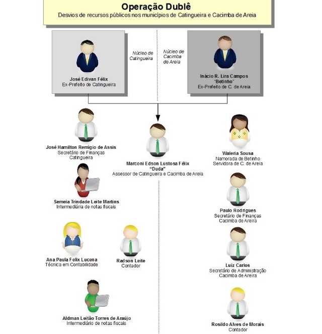 O Ministério Público Federal (MPF) em Patos (PB) denunciou o ex-prefeito do Município de Catingueira (PB), José Edvan Félix; o ex-secretário de Finanças, José Hamilton Remígio de Assis; além do ex-assessor Marconi Edson Lustrosa Félix (Duda); o contador Radson dos Santos Leite; a empresária Semeia Trindade Leite Martins; a servidora da prefeitura Ana Paula Felix de Lucena e Aldman Leitão Torres de Araújo.