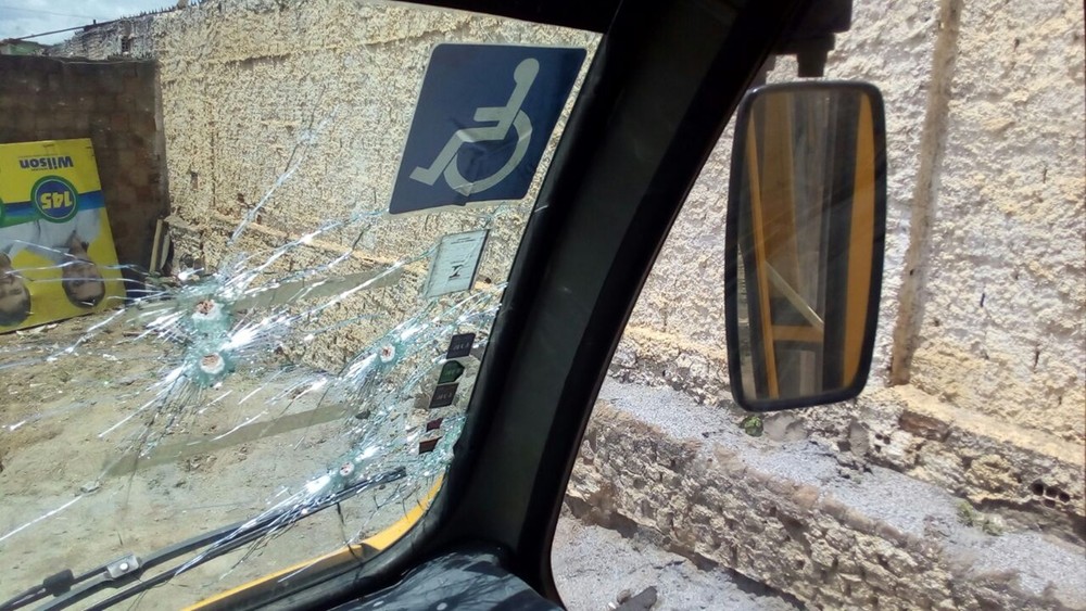 Ônibus escolar ficou com marcas de tiros após assalto (Foto: Felipe Valentim/TV Paraíba)