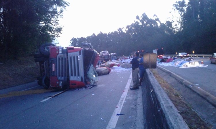 O carro ficou na rodovia e parcialmente destruído. A carga também ficou na estrada. A Polícia Rodoviária foi acionada para o local.