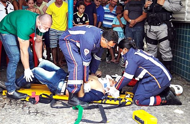 Jovem de 24 anos é atingido com vários tiros em praça de alimentação na região de Cajazeiras. FOTOS!