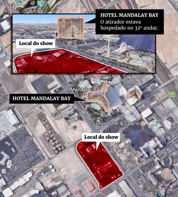 Pelo menos 59 pessoas morreram e mais de 500 foram transportadas a hospitais de Las Vegas na madrugada desta segunda-feira (2/10). Um atirador abriu fogo na principal avenida da cidade, a Strip, nas proximidades do Mandalay Bay Hotel e Casino. A região, onde ocorria um festival de música, foi isolada pelas forças de segurança.