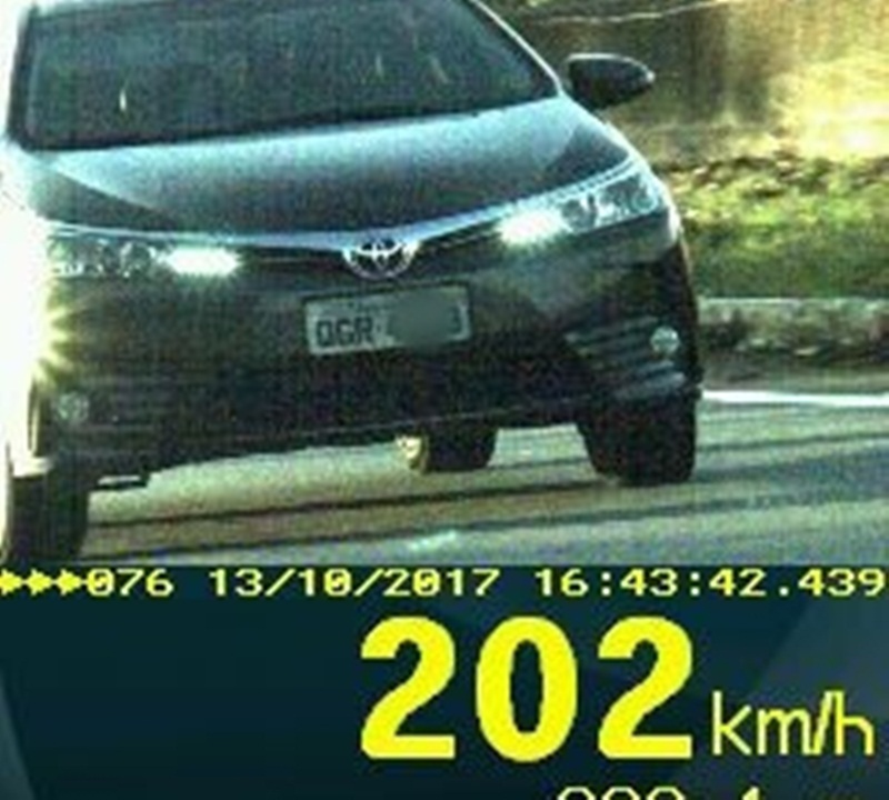 Nas imagens feitas pelo equipamento de radar, ver-se um carro com 202 km/h, um com 177 km/h e outro com 157 km/h.