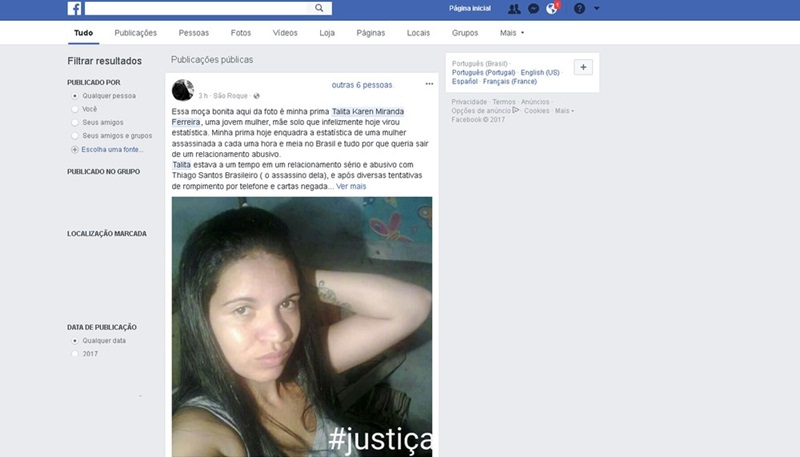 A família de Talita está abalada com o ocorrido. Uma das primas da jovem disse, em uma página de rede social, que Talita “infelizmente hoje virou estatística.”