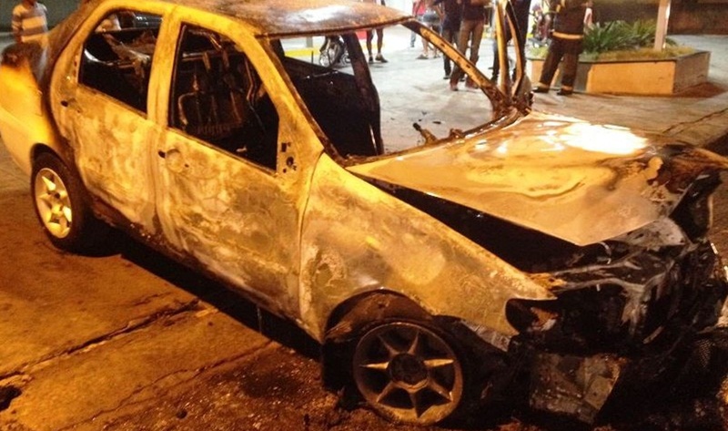 Veículo ficou completamente destruído. Incêndio começou quando homem deu partida.