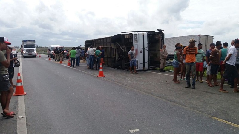 Um acidente envolvendo um ônibus de turismo que transportava estudantes, familiares e professores de uma escola de Gurinhém, no Agreste da Paraíba, tombou na BR-230 deixando vários feridos na manhã desta sexta-feira (27). Segundo a Polícia Rodoviária Federal (PRF), a causa do acidente foi excesso de velocidade do veículo.