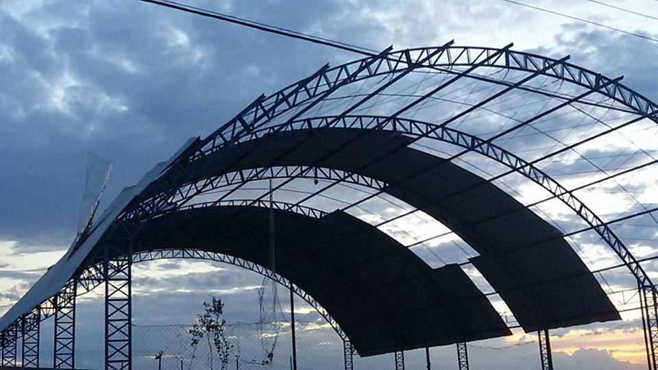 Vendaval derrubou teto de prédio (Fotos: Diamante Online e VPN)