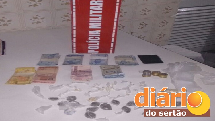 Com o mesmo foi encontrado 38 pedras de substância semelhante ao crack, 15 invólucros contendo substância semelhante à maconha e determinada quantia em especie.