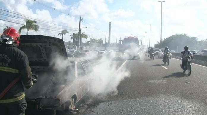 Um caso impressionante aconteceu na tarde desta quarta-feira (29) em João Pessoa, na BR-230 sentido Cabedelo. Um carro pegou fogo e ficou completamente destruído às margens da rodovia.