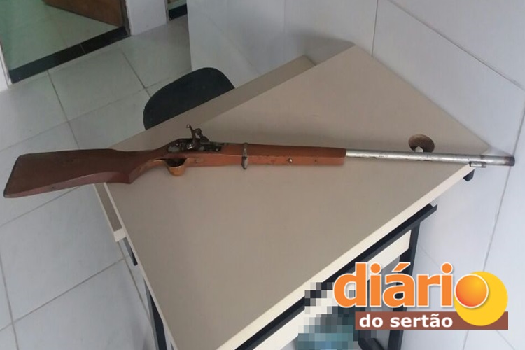 Ao chegar no local os militares localizaram a vítima e apreenderam a espingarda de fabricação caseira (bate bucha), mas o acusado já tinha foragido.