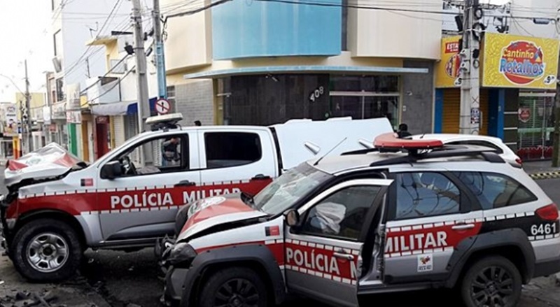 Durante a perseguição os dois veículos da polícia colidiram no cruzamento entre as ruas Major José Fernandes e Francisco Euclides Fernandes.