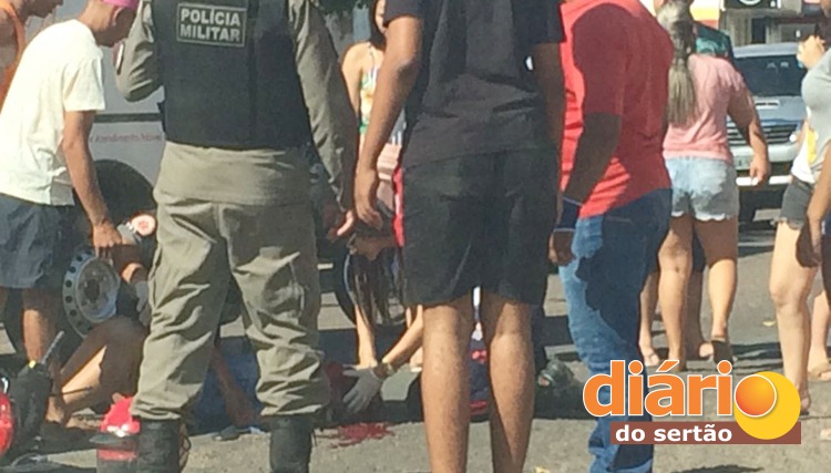 Uma mulher ficou ferida em um acidente de moto registrado na tarde deste domingo (31) na Rua Nelson Meira, bairro Estação na cidade de Sousa.